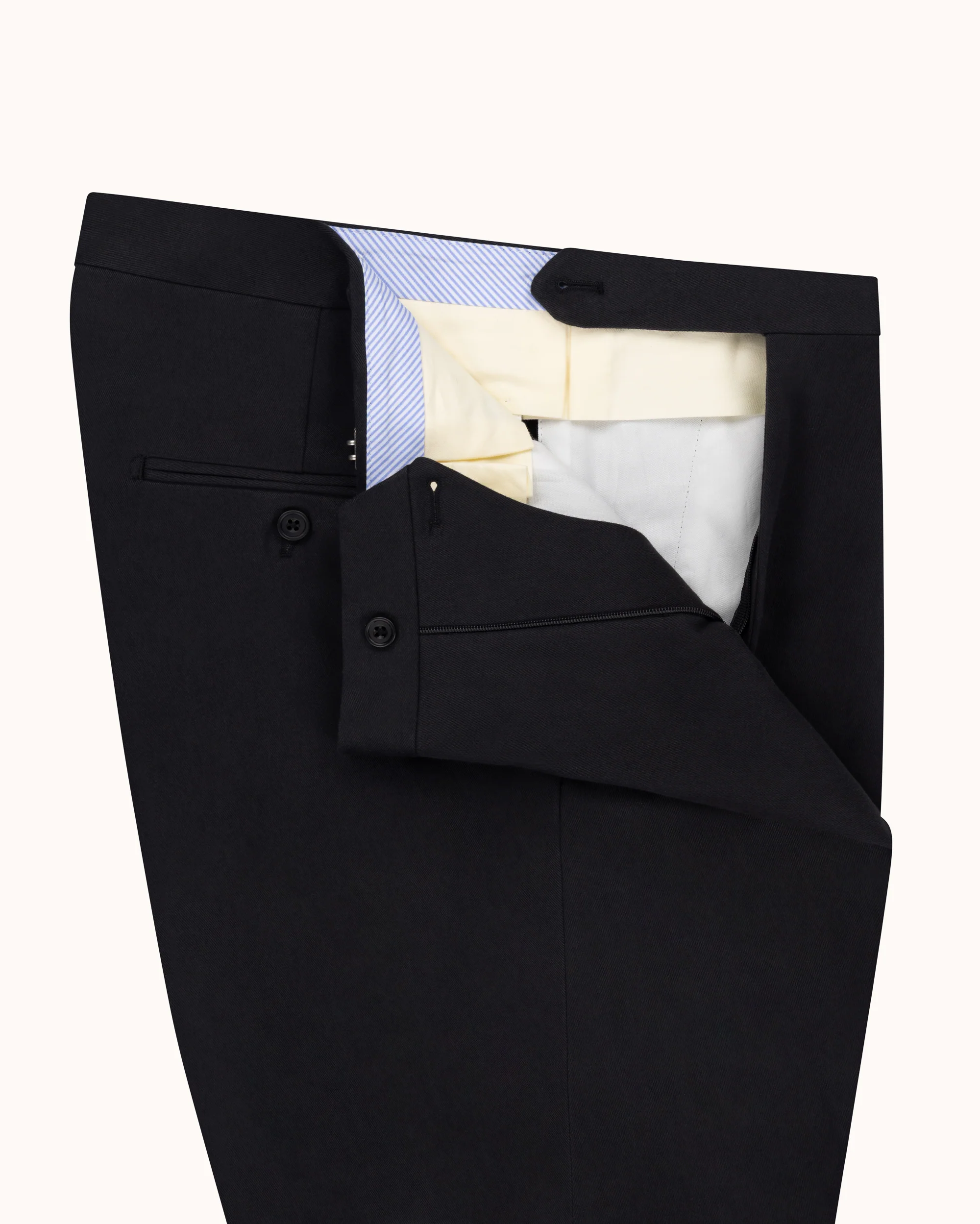 Designed to sit high on the waist, our Classic Pleated Trouser features a high rise and single reverse pleats for a comfortable, classic fit. Cut with a spacious thigh and a gentle taper for a clean line through the leg and finished with a curtained waistband, coin pocket, side adjusters, genuine horn buttons, and two rear pockets. The hems are left unfinished to be tailored to the wearer’s desired length – we recommend a turn-up with little to no break