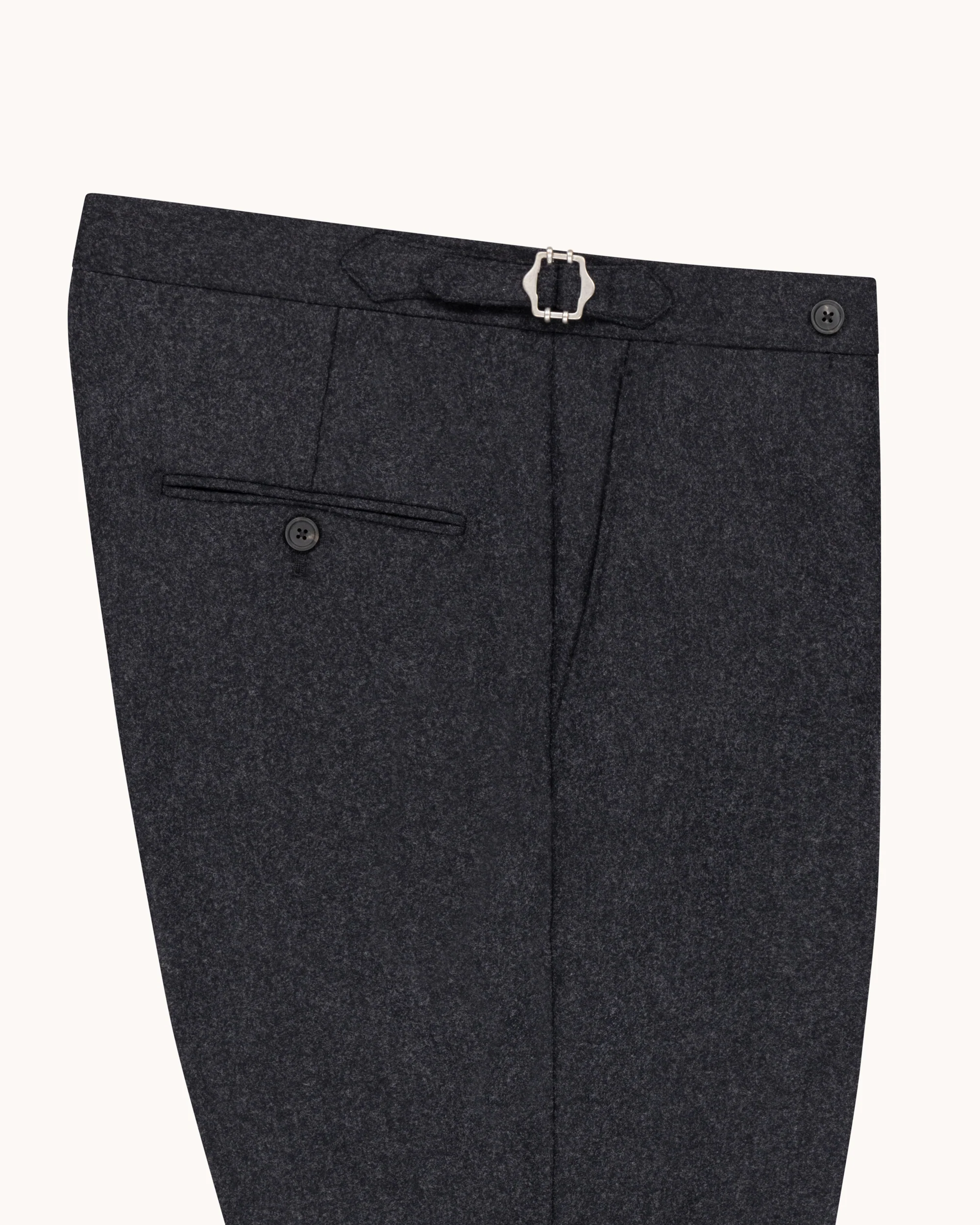 Single Pleat Trouser - Charcoal Grey Woollen Flannel